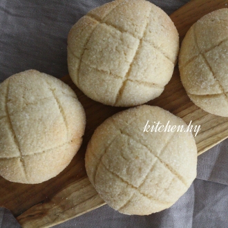 ふんわりおこめのパン生地をサクサクのおこめのクッキー生地で包んだグルテンフリーなメロンパン